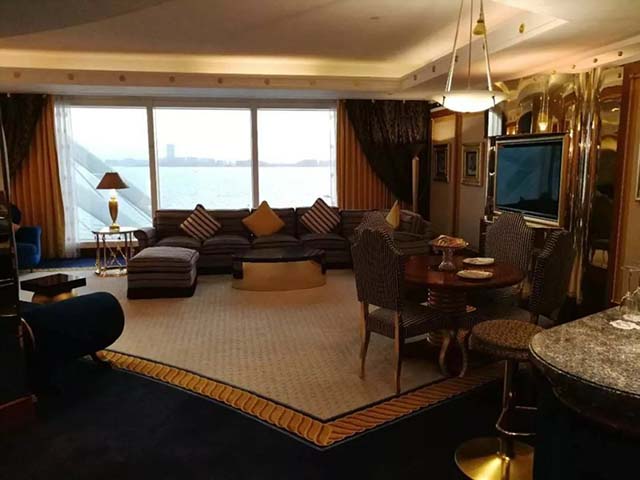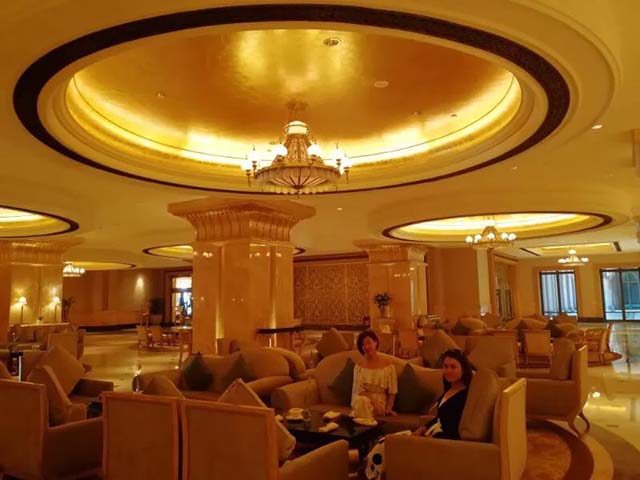 酒店的裝修用的全部是最新材料和技術(shù),飯店的圓頂用最新照明技術(shù)、防腐特殊材料和純金制造,一到晚上就會自動發(fā)光,金光閃閃,永不掉色。