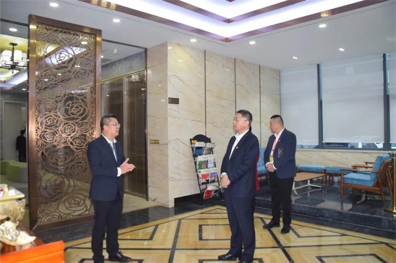 新美集團董事長李德峰、總裁張翠玲對楊欣斌書記一行人的到來表示熱烈歡迎,隨后李德峰董事長陪同楊欣斌書記一行,相繼參觀了新美集團總部辦公樓、新美設計院、項目管理中心等。在參觀考察過程中,李德峰董事長向區黨代表、深圳職業技術學院、新圍社區各位領導和各下屬和支部黨員干部代表成員,一一介紹了新美集團的發展歷程、經營理念、業務板塊、以及眾惠供應鏈平臺的特色業務發展模式。通過實地參觀考察,楊欣斌書記一行對新美集團的企業發展與企業文化有了更進一步了解,并表示出高度認可和贊賞。